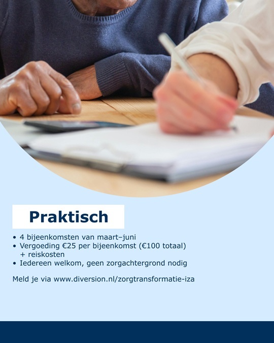 De zorg in onze regio verandert. Daarom is jouw mening belangrijk. Wil jij (of iemand die je kent) helpen om de zorg en ondersteuning beter te laten aansluiten op het dagelijks leven? Het gaat om 4 bijeenkomsten in maart tot en met juni 2026. De vergoeding is €25 per bijeenkomst en reiskosten worden vergoed.
