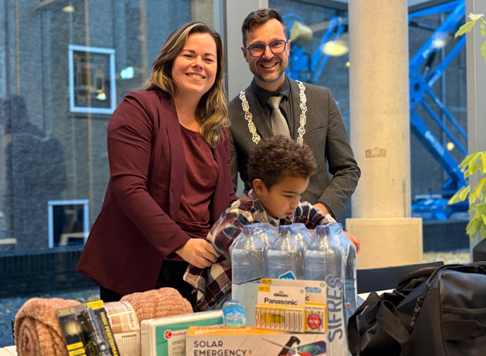 Maandag 3 november ontving Alexandra, de winnares van de prijsvraag tijdens de Veiligheidsdag van 4 oktober, haar prijs: een noodpakket. Burgemeester Leon Anink overhandigde het noodpakket persoonlijk aan haar.